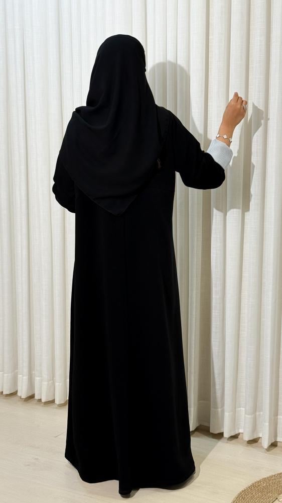 (يشملها طرحه شيفون مجانا ) ملاحظة : قد تختلف درجات اللون في الواقع بسبب إضاءة التصوير يرجى ترك ملاحظات التعديل بالأسفل ( التعديل يشمل التضيق التقصير تركيب طقطق فقط )